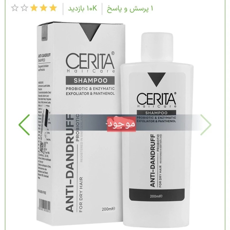 شامپو ضد شوره مناسب موهای خشک سریتا،(پروبیوتیک لایه بردارآنزیماتیک پانتنول)