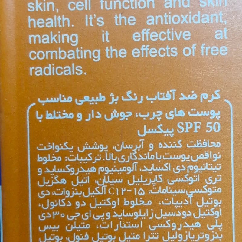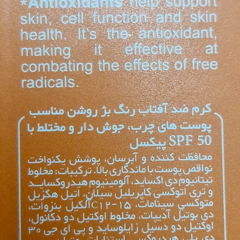 کرم ضد افتاب رنگ بژ طبیعی مناسب پوستهای چرب ومختاط پیکسل بژ طبیعی وبژ روشن وبدون رنگ