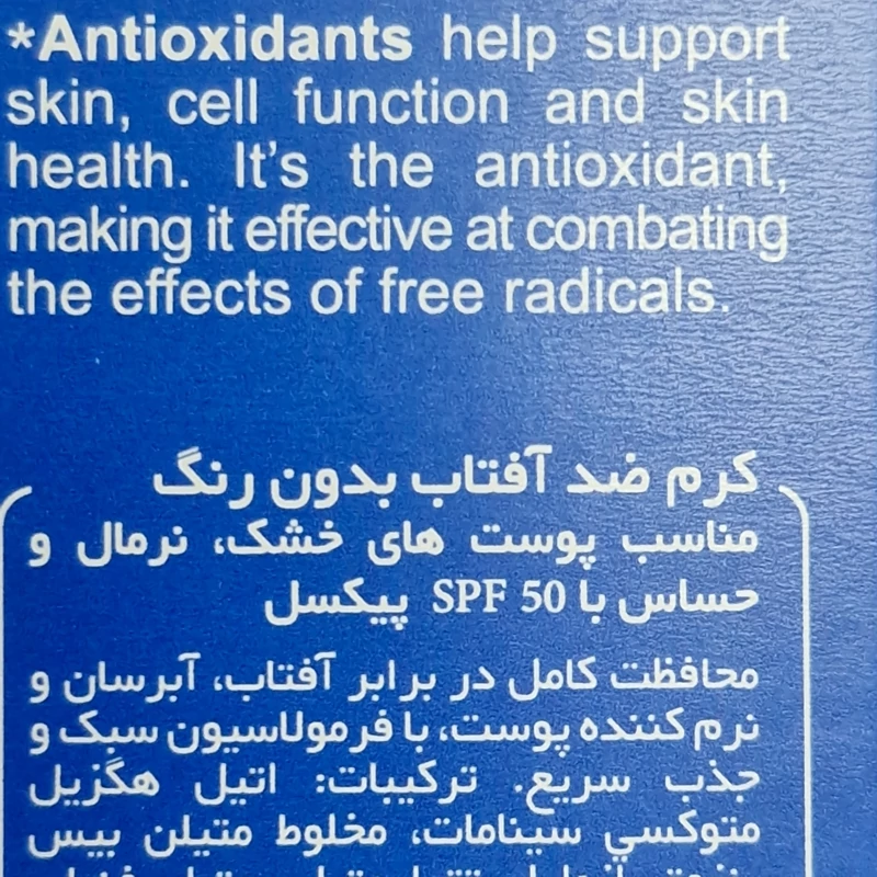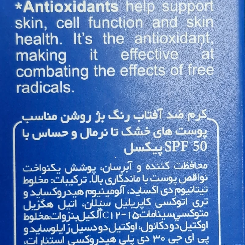 کرم ضد افتاب رنگ بژ طبیعی مناسب پوستهای خشک تا نرمال وحساس با50SPF پیکس بژ طبیعی و بژ روشن وبدون رنگ
