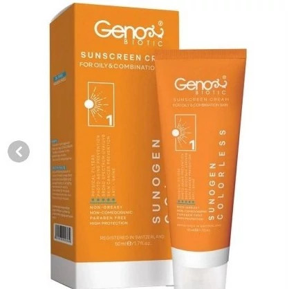 کرم ضد افتاب ژنو بایوتیک مناسب پوستهای چرب ومختلط بی رنگ