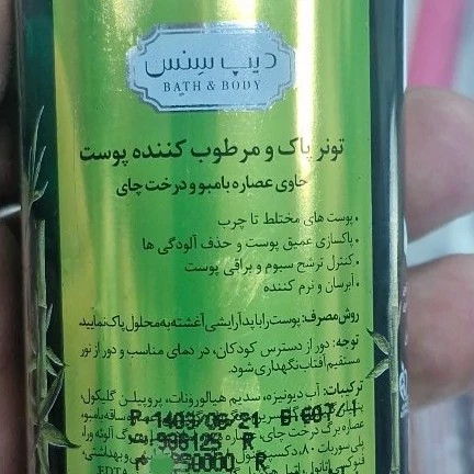 تونر پاک کننده ومرطوب کننده دیپسنس حاوی عصاره بامبو ودرخت چای